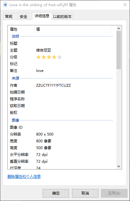 rar压缩包里有一张图片和一个加密的压缩包,查看图片属性发现hint